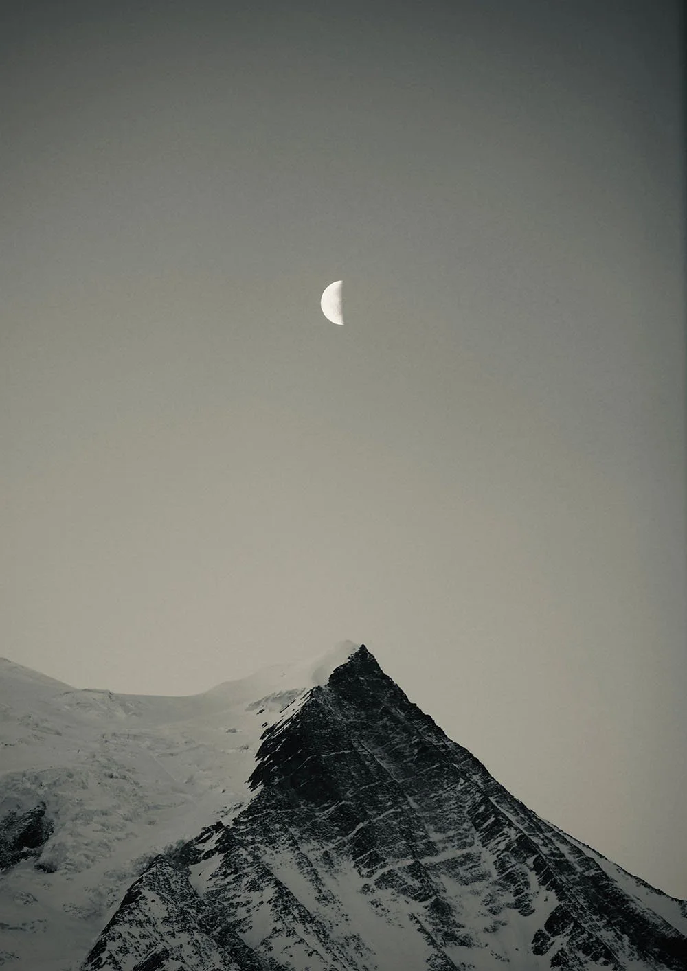 ← Back to all Moon reverie. The power of the moonlight behind the mountains, full moons cropped by peaks and croissants.